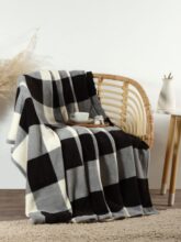 Плед «Этель. Клетка черно-белая», 180×200 см, корал-флис 220 г/м².