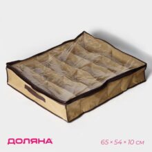 Кофр для обуви Доляна, 12 отделений, 65×54×10 см, бежевый.