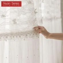Прозрачная занавеска с изображением деревьев, тюль, оконная вуаль, драпировка, ткань подзора зелёный