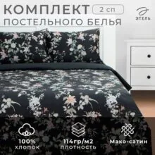 Постельное белье Этель 2 сп Black flowers, 175х215