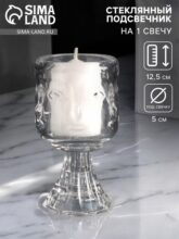 Стеклянный подсвечник на 1 свечу «Лица», d=5 см, прозрачный, 7×7×12.
