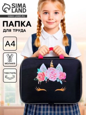 Папка текстильная на молнии с ручками, формат A4+. Размер 270 х 70 х 350 мм. Материал: износо-морозостойкий водоотталкивающий 100% полиэстер. Предназначена для транспортировки учебных принадлежностей, документов и различных аксессуаров. Имеет одно большое отделение с расширением и карманом внутри, застежка на молнии с мягким ходом. Для комфортной переноски ручки папки выполнены из прочной стропы