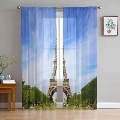 Париж, Франция, городской пейзаж с Эйфелевой башней, закатом, шифоновые прозрачные шторы для гостиной, спальни, оконная вуаль, тюлевая занавеска 135W x 114H(cm)