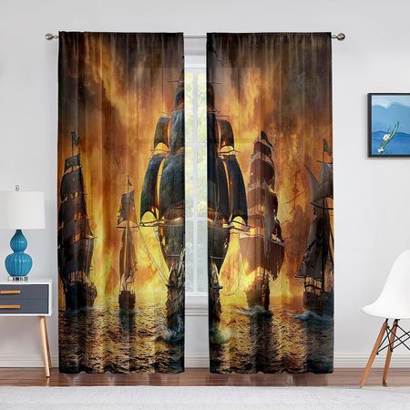 Парусники корабль на океане закат красное небо тюлевые прозрачные оконные шторы для гостиной спальни современный тюль-вуаль украшение для занавесок 1 PCS W100XH250cm&Rod Pocket