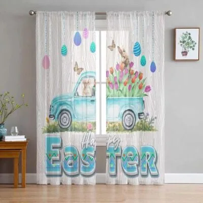 Главная » Все для дома Пасхальный грузовик, яйца, кролик, тюлевые шторы для гостиной, прозрачные занавески для спальни, кухни, жалюзи, вуаль, шторы 135W x 114H(cm) Просмотров 18 Yifulin