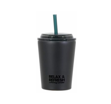 PEARL METAL Кружка-стакан, бутылка, чашка 300 мл, размер M, с соломинкой, вакуумная изоляция, холодная изоляция, капельная кофейная кружка с широким горлом, черная кружка для кофе, соломенный стакан чёрный