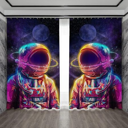 Персонализированный креативный узор астронавта, высокие затемняющие шторы, технология Sense, звездное небо, космическая затеняющая драпировка для спальни W55 X H120cm X 2Grommet Top