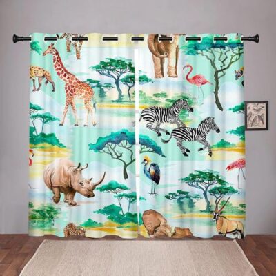 Плотные мультяшные акварельные животные океан затемняющие шторы для спальни гостиной ванной кухни двери дома с высоким затемнением W55 X H120cm X 2Grommet Top