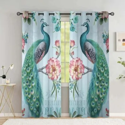 Плотные шторы с цветком павлина для спальни, шторы с животными в гостиной, занавески для окон, домашнего декора, новая драпировка с высоким затенением W100xH240(CM)x2PCS-Grommet Top