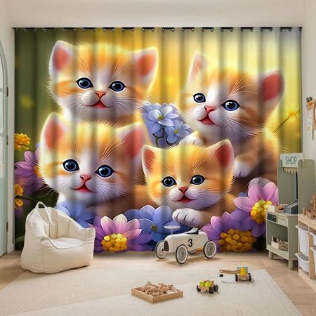 Плотные шторы с милым котом, детская комната, эркер, окно от пола до потолка, простая установка, затенение, тепло, различные узоры W55 X H120cm X 2Grommet Top
