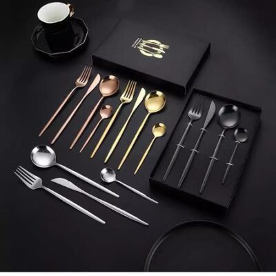 Главная » Все для дома Подарочный набор из 4 предметов: нож в стиле вестерн из нержавеющей стали, вилка, ложка и нож для стейка Spoon чёрный/золотой Просмотров 1 AI Supermarket