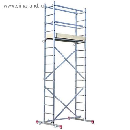 Подмости используется для ремонтно-отделочных и монтажных работ на высоте до 5 метров. Конструкция собирается без применения инструментов. Леса можно устанавливать и использовать на неровных поверхностях (ступенях, холмах). Опорная траверса оснащена откидными роликами для быстрого перемещения.