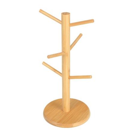 Подставка для кружек из бамбука на 6 крючков, нескользящая подставка для кофейных чашек, легко устанавливаемая подставка для кружек для кухонной стойки Round