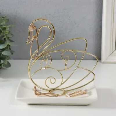 Подставка для мелочей «Лебедь», керамика, металл, белый с золотом, 15.5×10.5×15.3 см
