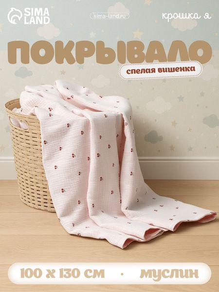 Покрывало «Спелая вишенка», 100×130 см, 4-слойный муслин, 100% хлопок — это нежное и дышащее покрытие для детского пространства. Лёгкое изделие с ягодным принтом подходит на кроватку, пелёнальный стол или как игровое покрывало — заботливое решение для тех, кто ценит натуральность, мягкость и атмосферу детской заботы без излишеств.ОсобенностиТип — детское покрывало, используется как лёгкий слой на кроватке, в коляске или на полу во время игр.Размер — 100×130 см, формат ясельного постельного белья, идеально подходит для младенцев и детей до трёх лет.Материал — 100% хлопок в виде 4-слойного муслина, мягкий, воздухопроницаемый и гипоаллергенный, безопасен даже для самых чувствительных участков кожи.Цвет — белый фон с розовыми вишенками, создаёт ощущение свежести, веселья и природной гармонии, легко сочетается с другими элементами детского интерьера.Дизайн — тема спелой вишни в минималистичном исполнении, добавляет пространству игривости, света и детской радости.Структура — четырёхслойная ткань обеспечивает умеренное тепло, не перегревает и сохраняет комфорт в любое время года.Декор — контрастная отстрочка по краю, придаёт изделию аккуратности, прочности и визуальной завершённости.Назначение — для новорождённых и малышей, подходит как универсальное покрывало в повседневной заботе.Уход — допускается стирка при 40 °C, глажка при 150 °C, не использовать отбеливатель, барабанную сушку не применять для сохранения структуры ткани.Забота начинается с первого прикосновения и его хлопковой мягкостиЭто покрывало делает детское пространство частью вашей любви — о внимании к деталям, безопасности и внутреннем тепле. Белый фон и розовые вишенки работают вместе, чтобы передать атмосферу свежести, покоя и нежности. Укройте малыша — и почувствуйте: каждый момент рядом становится чуть проще, а мир — немного ближе к тому, где главное — это тепло, которое вы даёте руками, сердцем и маленькими, но важными вещами.