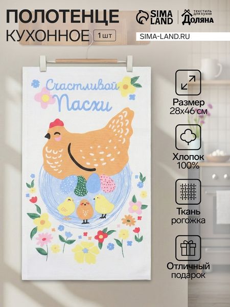 Полотенце кухонное Доляна «Счастливой пасхи» 28×46 см, рогожка, 100% хлопок, 160 г/м²