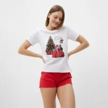 Пижама новогодняя женская (футболка, шорты) Tusi, белая