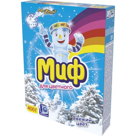 Порошок стиральный Миф Свежий цвет предназначен для использования в стиральных машинах, подходит для стирки цветных вещей. Справляется даже со сложными загрязнениями при температуре воды 30 градусов. Низкотемпературная стирка сохраняет цветовую яркость и интенсивность.