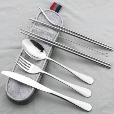 Портативная посуда Посуда для кемпинга Столовые приборы Набор столовых приборов Нож Вилка Ложка Палочки для еды Соломенный набор Посуда из нержавеющей стали 18/10 серебряный