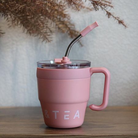 Портативная соломенная чашка из нержавеющей стали, 1 шт., офисная Термальная чашка для кофе, термальная чашка для воды, мужская кофейная чашка розовый