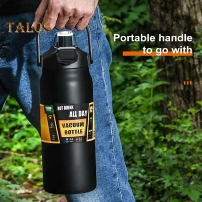 Портативная термостаканка с соломой из нержавеющей стали с вакуумной изоляцией, спортивная бутылка для воды, большая емкость, уличные термосы для путешествий, спорта, пешего туризма 1500ML темно-синий