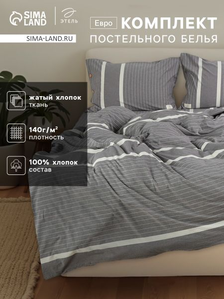 Главная » Все для дома Постельное белье Просмотров 10 Постельное белье Этель Евро «Тренд» 200х220 см, 220х240 см, 50х70-2шт,100%жатый хлопок,140гр/м2. Этель