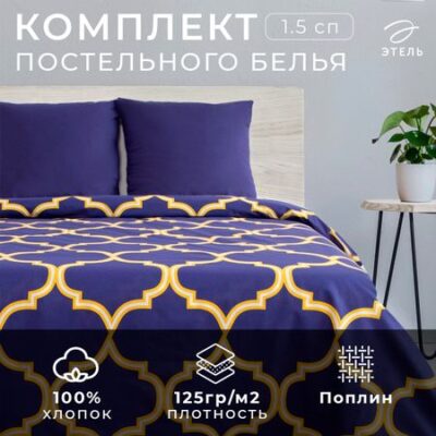 Постельное белье Этель 1,5 сп «Вечер в Марокко» 143х215 см, 150х214 см, 70х70 см -2 шт. Постельное белье «Этель: поплин» создано специально для тех, кто привык окружать себя комфортом и стремится внести в свою жизнь как можно больше ярких красок. <b> Чем хорош поплин? </b> Данный материал — удивительно мягкая, тонкая и одновременно очень прочная ткань. Он отличается благородным матовым блеском, который достигается за счет особой технологии производства: в качестве основы выступают тончайшие хлопковые нити, а горизонтальные берутся в два раза толще. Постельное белье из поплина отлично поддается окрашиванию, а потому сохраняет насыщенность цвета долгое время. Кроме того, оно хорошо пропускает воздух, легко стирается и разглаживается. <b> Особенности постельного белья</b> <ul> <li> Изделия изготовлены из 100 % натурального экологически чистого хлопка. </li> <li> Плотность ткани составляет 125 г/м².</li> <li> Для нанесения рисунков использовались качественные европейские красители, а потому аллергия и раздражения пройдут мимо. </li> <li> Простыня без поперечного шва! </li> <li> Все внутренние швы дополнительно обработаны оверлоком, чтобы избежать естественного осыпания края. </li> </ul> <b> Рекомендации по уходу за изделиями</b> : стирка при температуре не выше 40 °C без использования отбеливающих средств.
