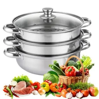 Главная » Все для дома Премиум 3-х уровневая кастрюля-пароварка из нержавеющей стали для приготовления овощей, пельменей, бульонов и соусов GERMANY Просмотров 1 Chic Home