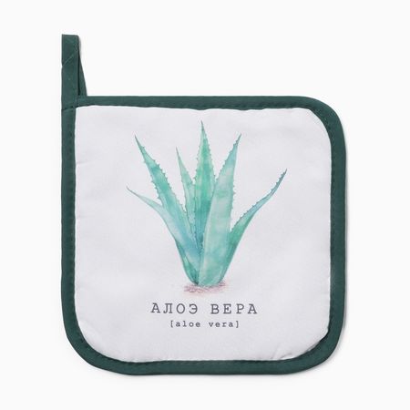 Эта квадратная прихватка с рисунком алоэ — ваш надёжный помощник на кухне. Она создана для безопасного обращения с горячей посудой и кастрюлями, надёжно защищая руки от высокой температуры. Стильный растительный принт в зелёно-белых тонах легко впишется в интерьер и добавит кухне уюта.Ключевые характеристикиУдобный квадратный формат 17×17 см.Изготовлена из гладкого и прочного полиэстера.Яркий рисунок с тематикой алоэ вера не выцветает.Простой уход: стирка при 30°C, глажка при 110°C.Не требует отбеливания, сушка в барабане не рекомендуется.Практичность в деталяхПлотная ткань из 100% полиэстера эффективно удерживает тепло, делая процесс готовки комфортным. Прихватка долго сохраняет внешний вид благодаря стойкой печати и несложным правилам эксплуатации. Это практичный и эстетичный аксессуар для ежедневного использования.