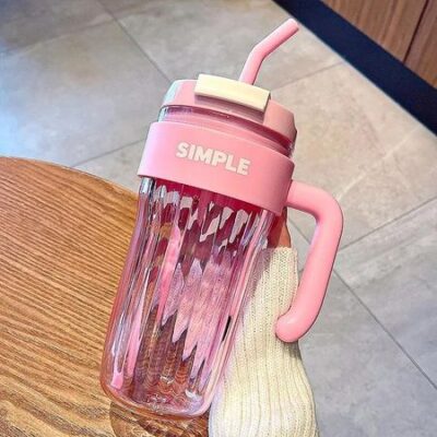 Главная » Все для дома Простая удобная пластиковая чашка большой емкости для девочек, офисная кружка с ручкой, соломенная чашка для воды, чашка для питья для пары Просмотров 11 sunshine888