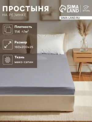 Главная » Все для дома Простыня Просмотров 27 Простыня на резинке Этель 160*200*25 см, цв. серый,100% хлопок, мако-сатин, 114г/м2. Этель