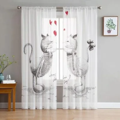 Главная » Все для дома Прозрачная штора с изображением кошки и кошки для гостиной, тюлевая занавеска для спальни, кухни, оконная вуаль, шторы 135W x 114H(cm) Просмотров 10 Yifulin
