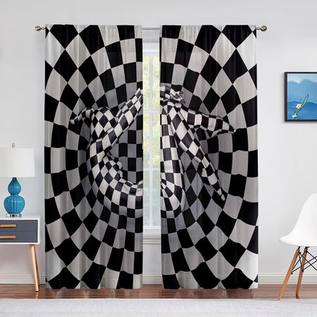 Главная » Все для дома Прозрачная вуаль с геометрическим рисунком «Девушка в шахматной доске», черно-белые абстрактные тюлевые шторы для окон для гостиной, спальни 1 PCS W100XH250cm&Rod Pocket Просмотров 10 Super Six