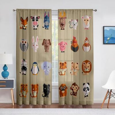 Прозрачная вуаль с изображением животных джунглей, занавеска для детской спальни, детской комнаты, милый слон, лев, жираф, тигр, тюлевые занавески на окно W65X60H(cm)X2PcsGrommet Top