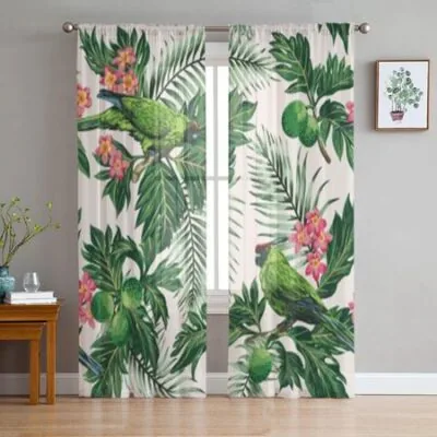 Прозрачная занавеска с экзотическими тропическими листьями для гостиной, спальни, вуаль, занавески для окон, занавески из органзы, вечерние тюлевые шторы 135W x 114H(cm)