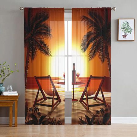 Главная » Все для дома Прозрачные оконные шторы «Пляж на закате» для гостиной, тюлевые шторы для спальни для девочек, кухонная вуаль, шифоновые шторы 135W x 114H(cm) Просмотров 10 A Family Of Home Textiles