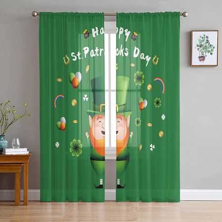 Прозрачные шторы для спальни гостиной спальни St. Зеленый грузовик с изображением счастливого клевера, занавеска-вуаль с карманом на штанге 1 PCS W100XH250cmGrommet Top