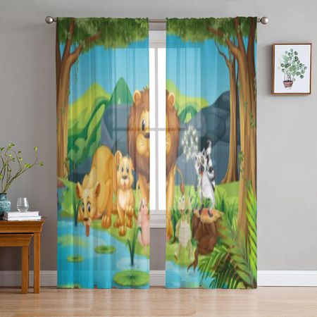 Прозрачные шторы с дикими животными, живущими у реки, для гостиной, прозрачные тюлевые занавески для окон, спальни, кухни, вуаль, шторы 135W x 114H(cm)