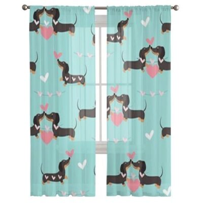 Прозрачные шторы с изображением собак и сердечек для спальни, вуаль, занавеска для гостиной, окна, прозрачные шторы для кухни, тюлевые шторы 135W x 114H(cm)