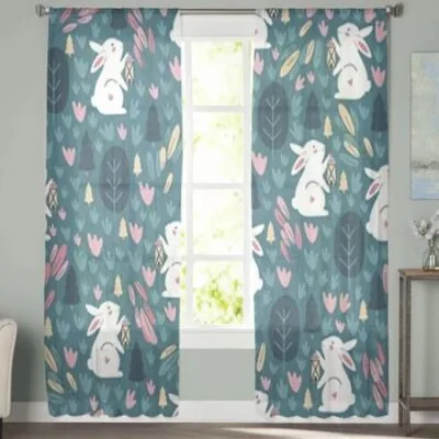 Прозрачные шторы с милым кроликом, вуаль для спальни, прозрачные шторы для окон, кухни, тюлевые шторы 135W x 114H(cm)