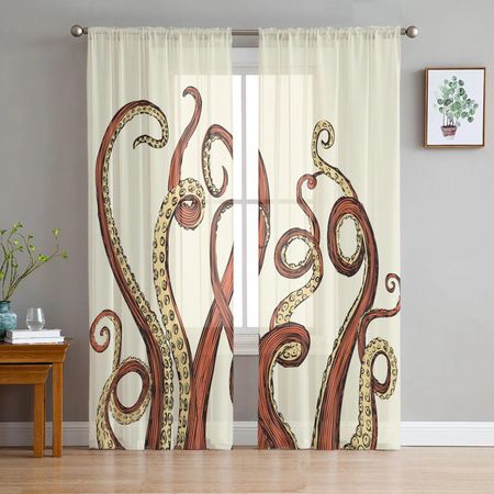 Прозрачные шторы с морским осьминогом в стиле ретро, Ктулху, прозрачные шторы для гостиной, современная вуаль, занавеска для спальни, тюлевые шторы, оконные шторы, декор W135 x H114cm