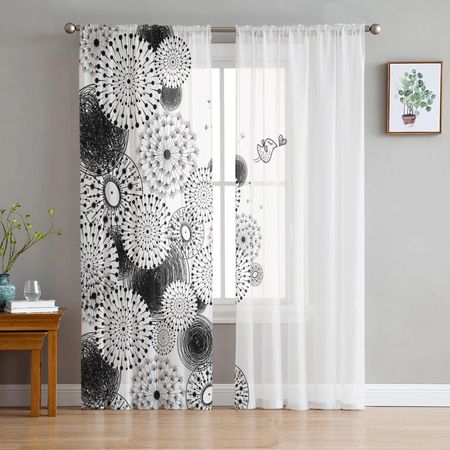 Прозрачные шторы с растением, фиолетовым цветком, тюлевые шторы для гостиной, окна, спальни, кухни, украшения дома, вуаль, шторы W135 x H115cm x1Grommet Top