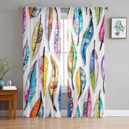 Прозрачные шторы с разноцветными перьями для гостиной, тюлевые шторы для детской спальни, кухонные шторы для окон 135W x 114H(cm)