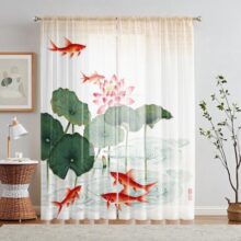 Прозрачные шторы с тропическими зелеными листьями растений для гостиной, спальни, тюлевые шторы, кухонные оконные шторы, панельные шторы 135W x 114H(cm)
