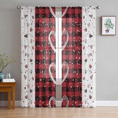 Прозрачные шторы в клетку с сердечками на День Святого Валентина для гостиной, кухни, оконные шторы, тюлевые занавески для спальни, вуали 135W x 114H(cm)