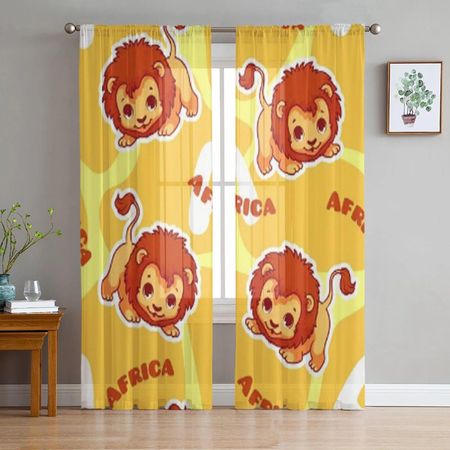 Прозрачные тюлевые занавески с изображением льва для гостиной, спальни, современная шифоновая вуаль, занавески из органзы, декор, шторы 135W x 114H(cm)