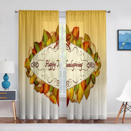 Прозрачные занавески на День благодарения в деревенском осеннем стиле с деревянным фоном для гостиной, зала, стены, платья, домашнего окна, тюлевые шторы с принтом 1 PCS W100XH250cm&Rod Pocket