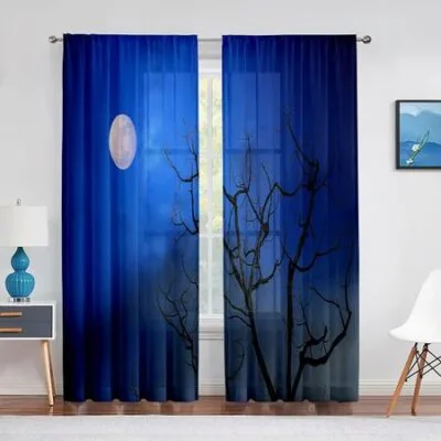 Прозрачные занавески с изображением звездного неба, метеора и луны для гостиной, спальни, дома, кухни, шифоновые тюлевые шторы, декор для окон 1 PCS W100XH250cm&Rod Pocket