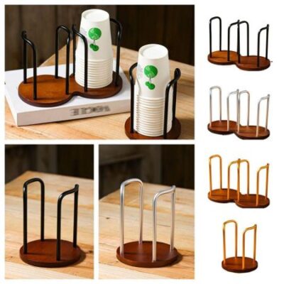 Пылезащитная стойка для хранения бумажных стаканчиков, деревянная латунная стойка для стаканчиков, держатель для хранения одноразовых стаканчиков Black-Single cup