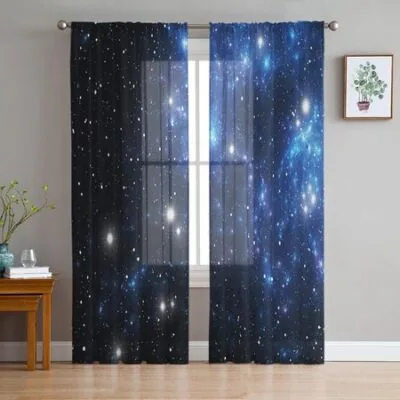 Ракета Летающий мультфильм Вселенная Космос Белый Тюль Прозрачные оконные шторы для гостиной Спальня Вуаль из органзы Шторы Портьеры W135 x H115cm x1Grommet Top